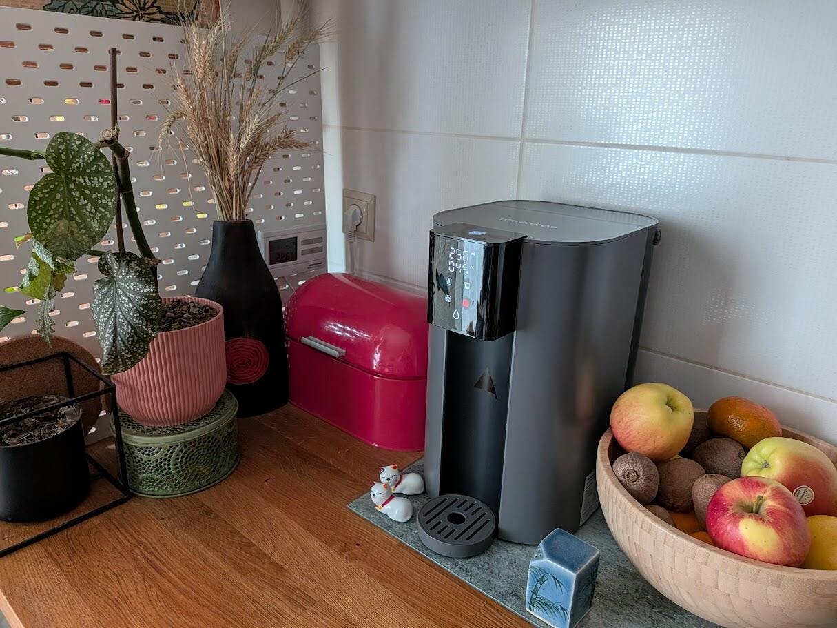 I am highly satisfied with my investment. A comprehensive review will require several months to a few years to accurately assess its performance. The long-term evaluation will depend on the availability of replacement filters in Italy and the overall longevity of the purification system. Overall, I am pleased with this solution, as an undersink water purifier was not a viable option for my needs.