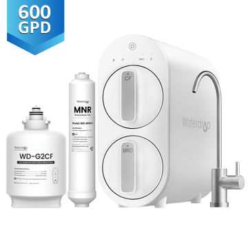 - En comparación con los purificadores de agua RO tradicionales con tanque de agua, el sistema de ósmosis inversa G2P600 ahorra un 600% más de agua.